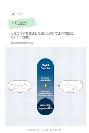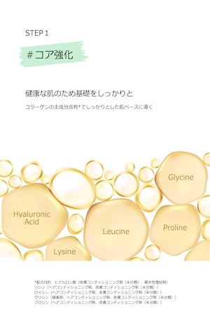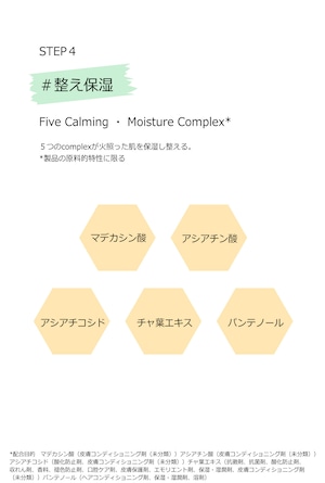■全成分:水、グリセリン、DPG、ベタイン、トリ(カプリル酸/カプリン酸)グリセリル、ペンチレングリコール、1,2-ヘキサンジオール、グリセレス-26、PEG/PPG-17/6コポリマー、ジステアリン酸ポリグリセリル-3メチルグルコース、セテアリルアルコール、クロレラエキス、グルコース、BG、カルボマー、フルクトオリゴ糖、フルクトース、水添レシチン、トロメタミン、(アクリル酸ヒドロキシエチル/アクリロイルジメチルタウリンNa)コポリマー、スクレロチウムガム、エチルヘキシルグリセリン、アラントイン、グリチルリチン酸2K、ヒアルロン酸Na、加水分解ホホバエステル、パンテノール、ポリソルベート60、イソステアリン酸ソルビタン、ヒアルロン酸、加水分解野菜タンパク、マルトデキストリン、アシアチコシド、アシアチン酸、マデカシン酸、トコフェロール、グリシン、セリン、グルタミン酸、チャ葉エキス、アスパラギン酸、ロイシン、イワベンケイ根エキス、アラニン、リシン、アルギニン、チロシン、フェニルアラニン、プロリン、トレオニン、バリン、イソロイシン、ヨモギ葉エキス、ケイトウ花エキス、イワヒバエキス、ヒスチジン、システイン、メチオニン、フィトール、香料