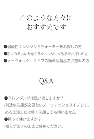 ■使用方法:本製品を適量コットンに出し肌のキメに沿って内側から外側にやさしく拭き取ります。